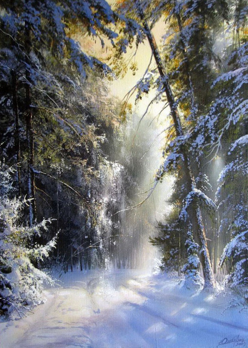 Akril, Napsütéses téli táj, referencia kép
